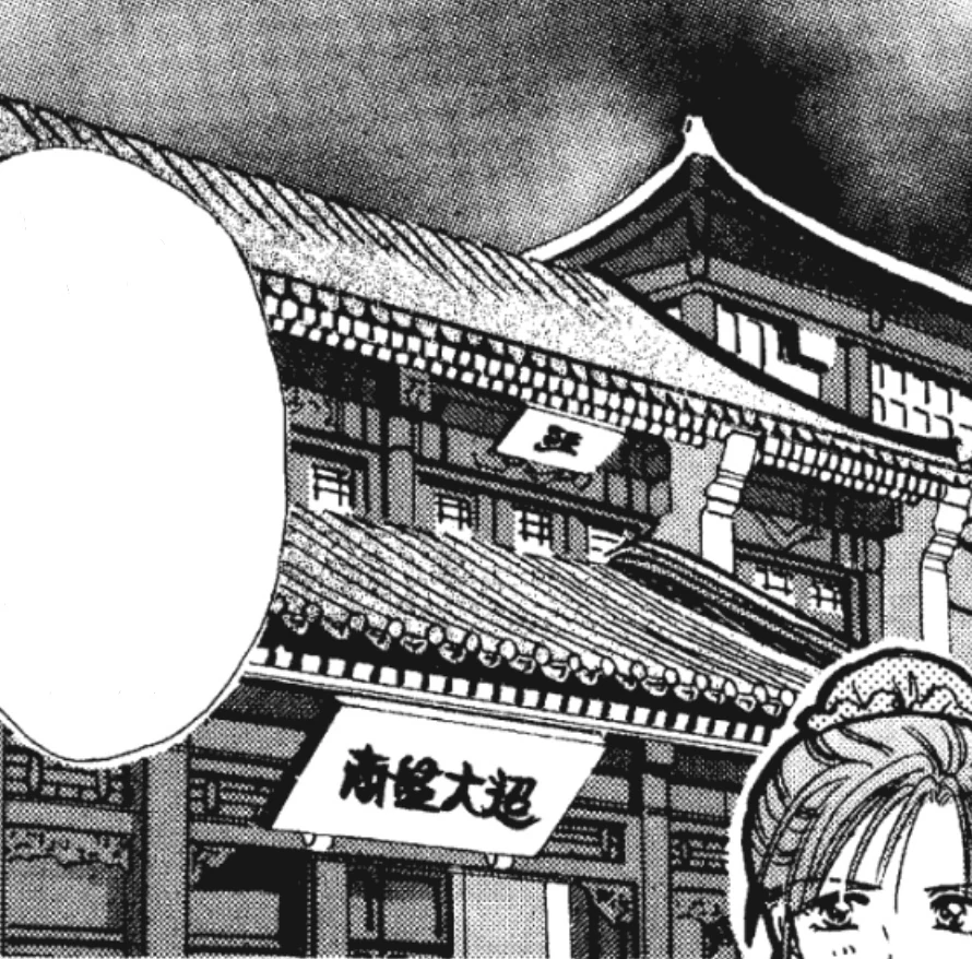 - The shop's name literally translates to "south, plate, large, ultra," but is most likely fortuitous Chinese characters strung together to form a title. There is a smaller sign above the door with a character referring to the family name.[4]