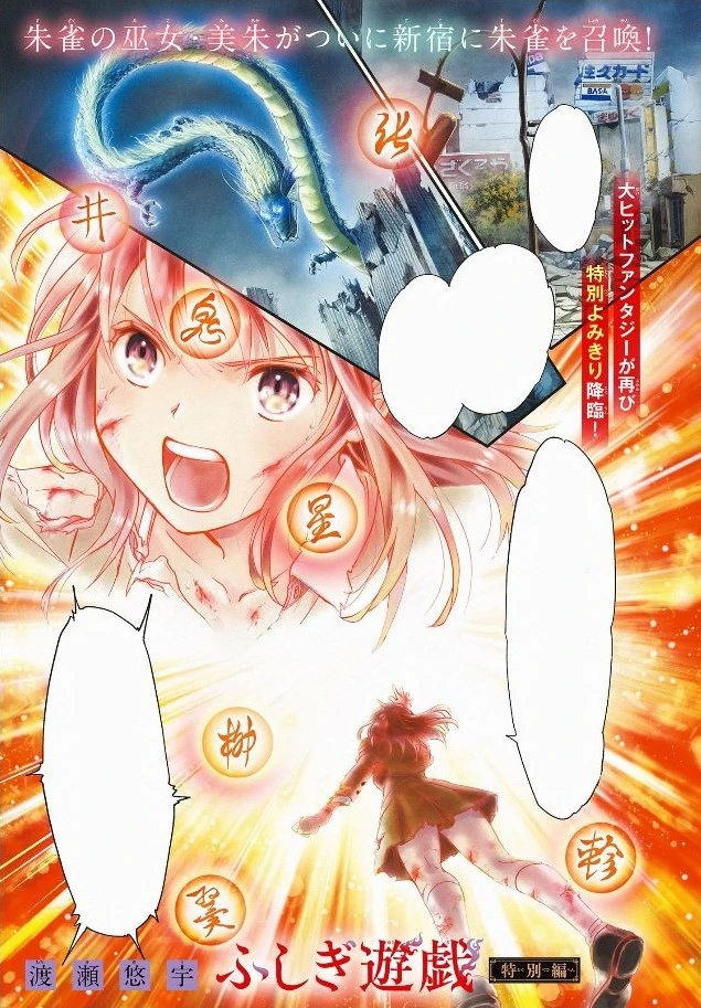 The one-shot returns to the final moments of the original run, covering Miaka's summoning of Suzaku, the arrival of the Suzaku Warriors, and Nakago's defeat.