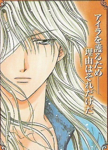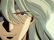 The crowning achievement of his abilities, however, lies within the symbol located on his right eye. He keeps his eye covered up not only to hide the character but to prevent its abilities from affecting others by accident. He calls the ability "Shikyokan", and it allows himself to see a number of things such as someone's innermost hopes and dreams and fears are. When someone looks into his eye, they can relive memories, even ones that they have forgotten. So far this was only used twice. Once he used it intentionally on Tomite to make him remember what had happened to Ayla, and once accidentally on Takiko, which had the effect of making her return to her own world.